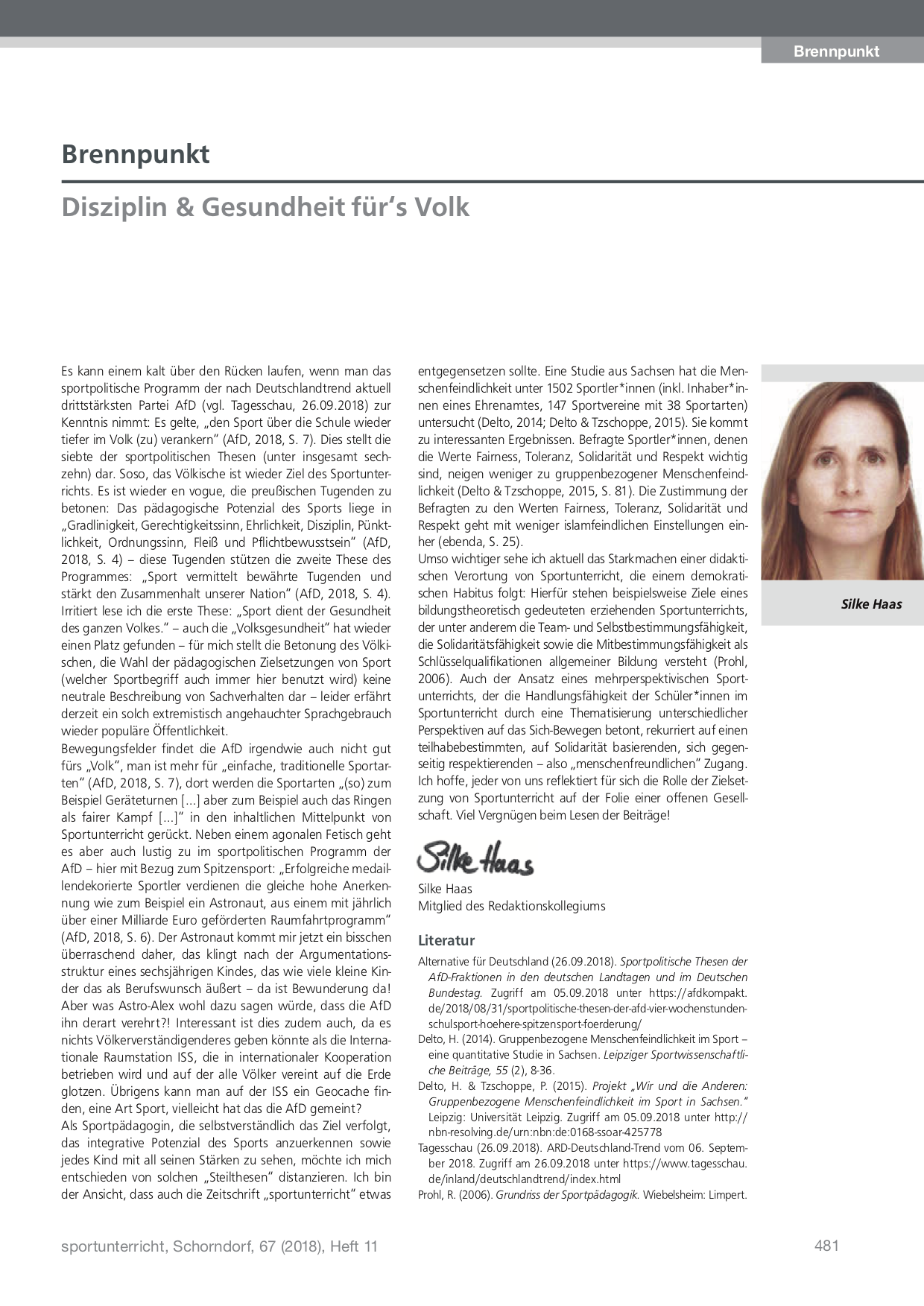Neue Ausgabe Zeitschrift Sportunterricht: November 2018