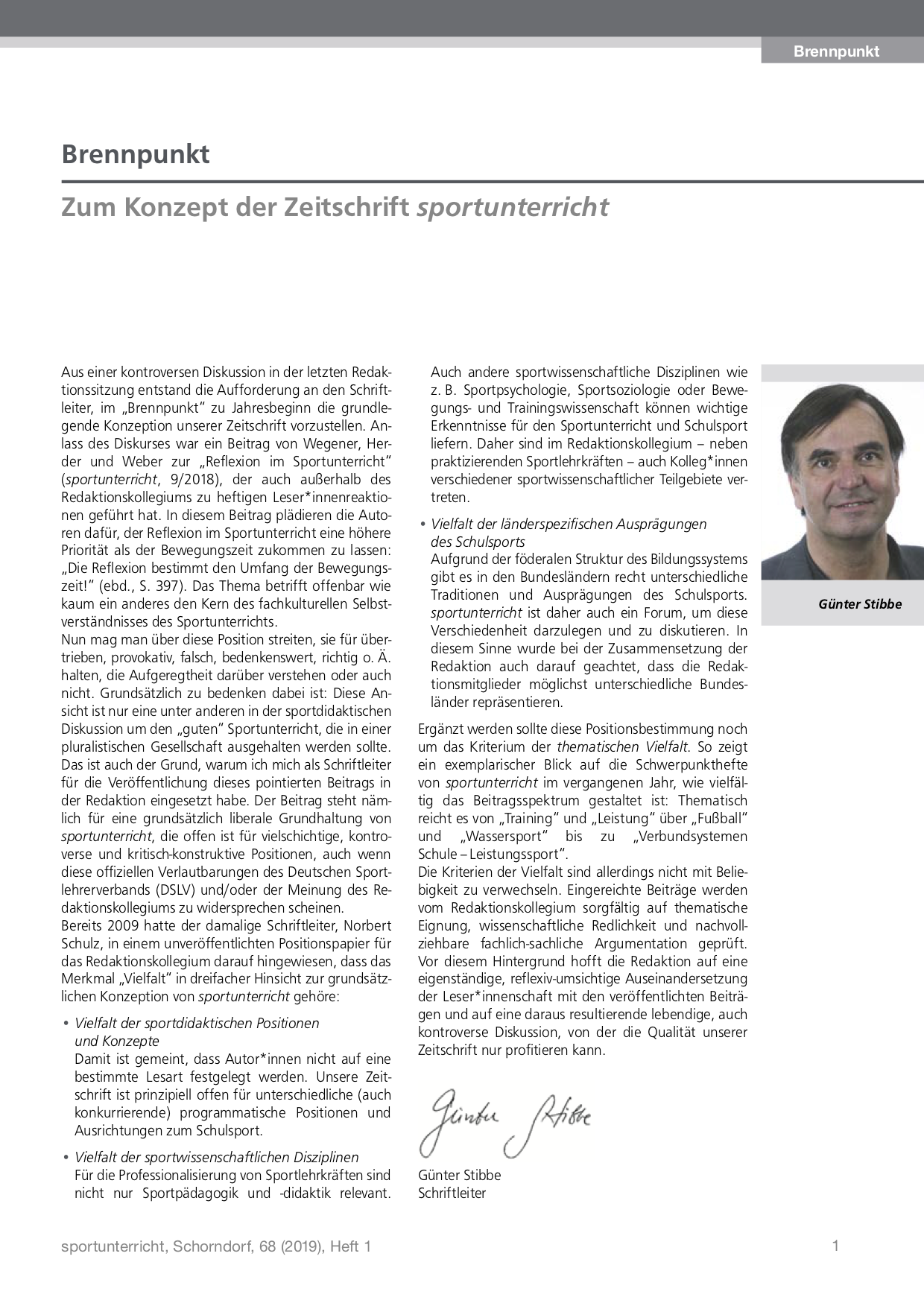 Neue Ausgabe Zeitschrift Sportunterricht: Januar 2019