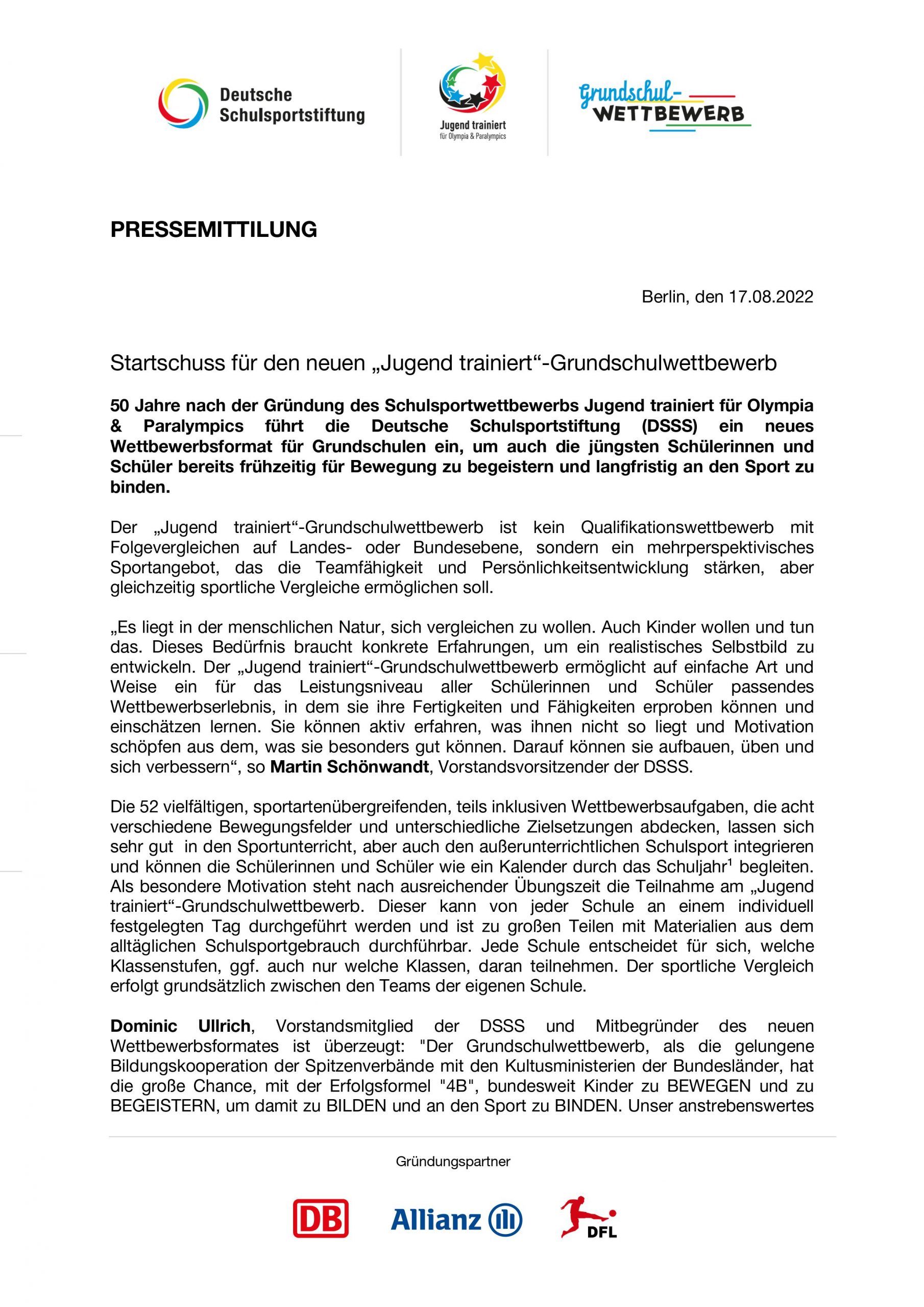 Startschuss für den neuen „Jugend trainiert“-Grundschulwettbewerb