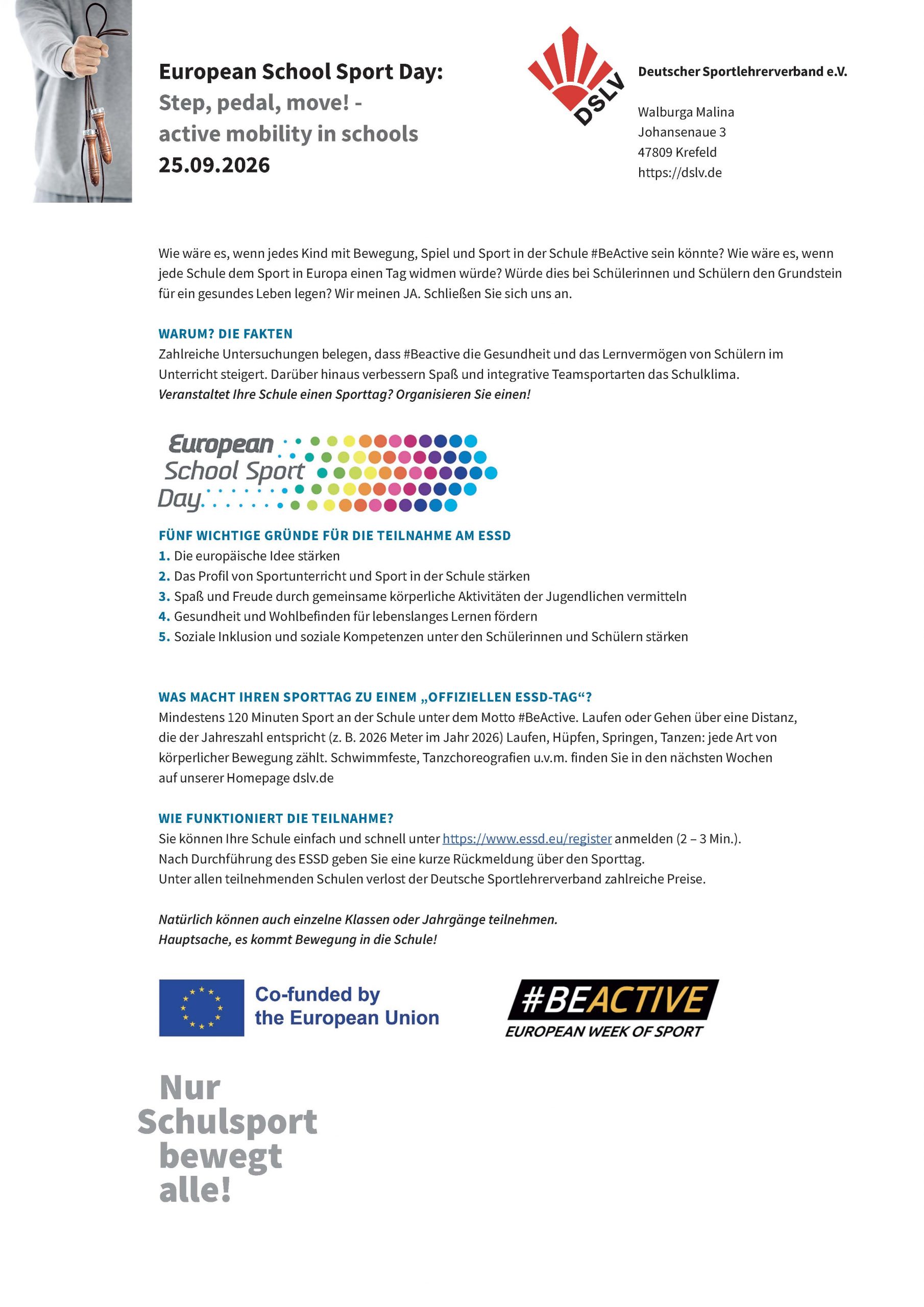Der European School Sports Day (ESSD) findet am 25.09.2025 statt.