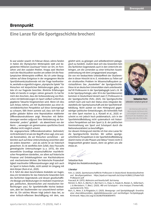← Vorheriger Beitrag: Neue Ausgabe der Zeitschrift sportunterricht: Februar 2026